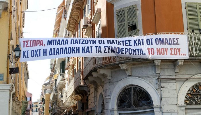 Οι φίλαθλοι της Κέρκυρας αντιδρούν στην απόφαση της Super League και τονίζουν πως είχε… πολιτικό δάκτυλο από πίσω. Γι’ αυτό το λόγο, πέρα από τις πορείες που πραγματοποιούν, ανάρτησαν ένα πανό με πολιτικό μήνυμα σε κεντρικό σημείο της πόλης, το οποίο είχε στο στόχαστρο τον Πρωθυπουργό, Αλέξη Τσίπρα.