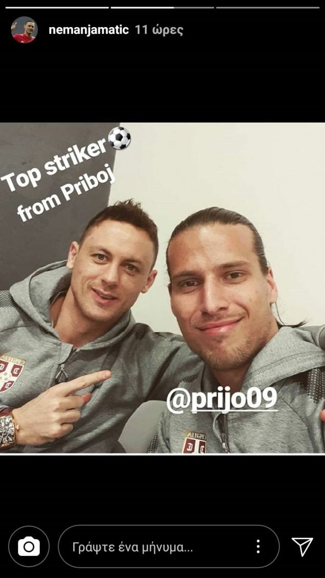 Στο πλαίσιο των προπονήσεων, ο “Πρίγιο” είχε την ευκαιρία να τα πει με τον μέσο της Μάντσεστερ Γιουνάιτεντ, Νεμάνια Μάτιτς ο οποίος, μάλιστα, τον αποθέωσε στα social media γράφοντας: “Top επιθετικός από το Πριμπόι”, με τον 27χρονο επιθετικό του “δικέφαλου του Βορά” να απαντάει με τη σειρά του: “Σερβική δύναμη”.