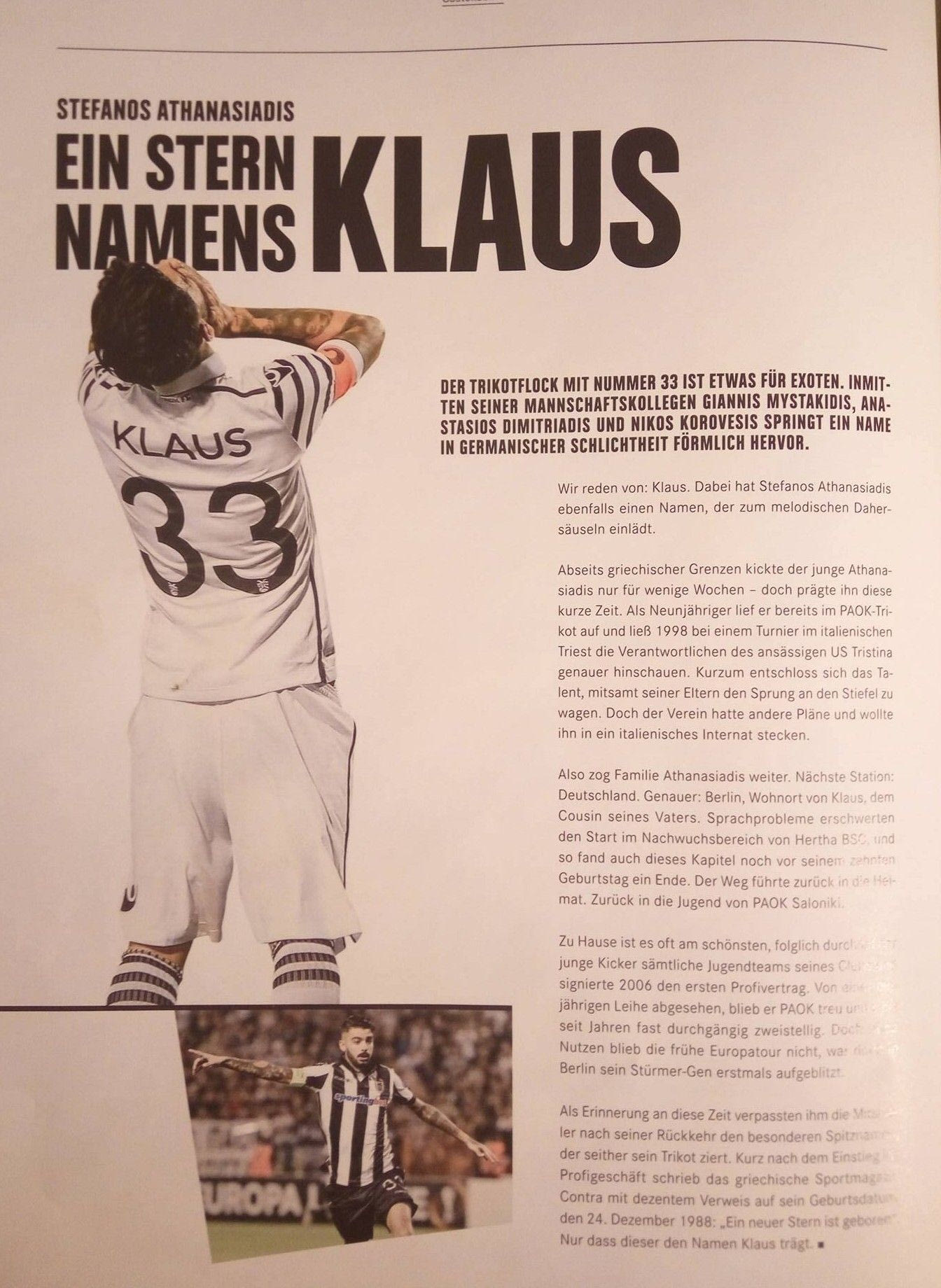 Οι Γερμανοί συντάκτες στο αφιέρωμα που έκαναν στον Κλάους Αθανασιάδη (προφανώς και λόγω του “γερμανικού” παρελθόντος του) επικαλέστηκαν στοιχεία από αφιέρωμα της ιστοσελίδας μας στον Ελληνα στράικερ.