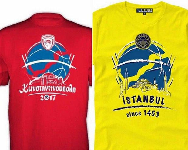 Μόνο λίγες ημέρες αφότου οι “ερυθρόλευκοι” γιόρταζαν στο ΣΕΦ την πρόκριση (επί της Εφές) φορώντας ένα πανηγυρικό t-shirt, άρχισε να κυκλοφορεί στις αγορές της Πόλης ένα αντίστοιχο με χτυπητές και προκλητικές, αλήθεια είναι, διαφορές για χάρη της Φενέρμπαχτσε (που απέκλεισε τον Παναθηναϊκό).