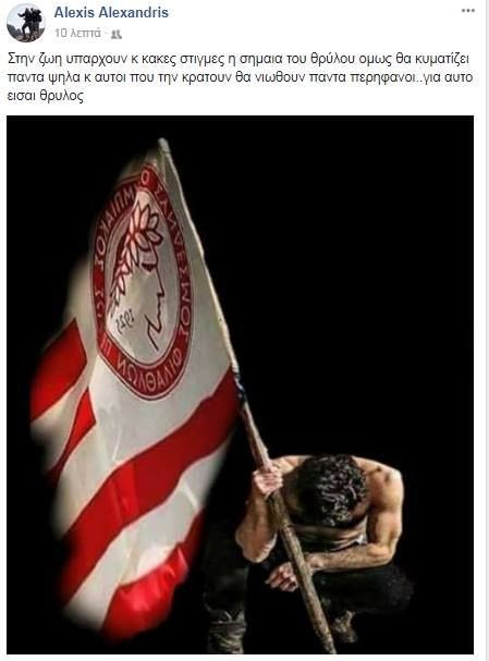 Ο Αλέξης Αλεξανδρής βγήκε μπροστά μετά την ήττα από την ΑΕΚ που άφησε πίσω τους πρωταθλητές Ελλάδας στην κούρσα του τίτλου και με... ερυθρόλευκο μήνυμα κρατάει ψηλά την... Ολυμπιακή σημαία (φωτογραφία).