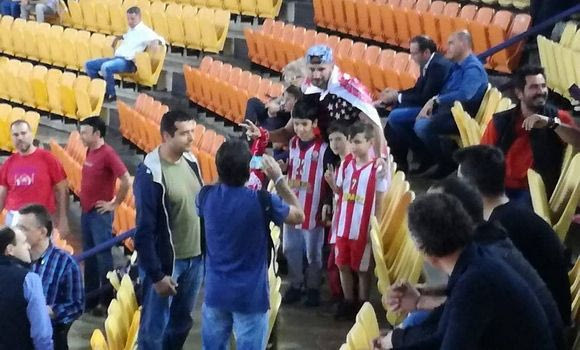 Ο αστεράτος Πάνος Αργιανίδης δεν σταμάτησε να βγάζει φωτογραφίες με φανς του, ενώ δεν αποχωρίστηκε και τη σημαία του Ολυμπιακού.