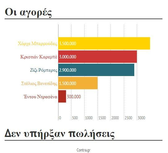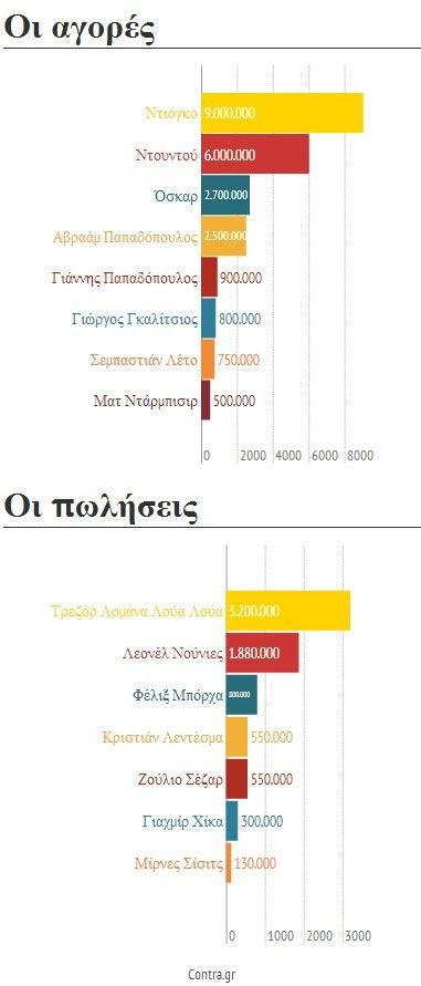* Μόλις 4 από τις 16 σεζόν ο Ολυμπιακός ήταν κερδοφόρος στον συγκεκριμένο τομέα, ήτοι εισέπραξε περισσότερα από όσα δαπάνησε για μεταγραφές