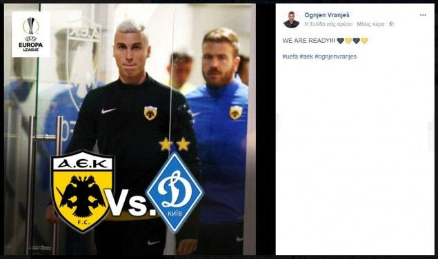 Η ΑΕΚ ρίχνεται στη "μάχη" των νοκ άουτ αγώνων του Europa League με πρώτο αντίπαλο την Ντιναμό Κιέβου στο ΟΑΚΑ και ο Ογκνιέν Βράνιες έστειλε το δικό του μήνυμα με ανάρτηση στα social media.
