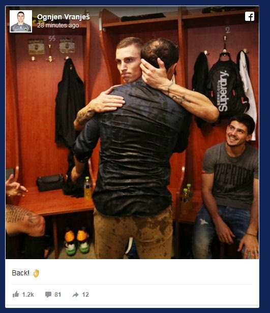 Λίγο αργότερα, ο Βόσνιος ανέβασε ποστ στο Facebook, όπου είναι αγκαλιά με τον Μανόλο Χιμένεθ και πάνω έχει βάλει για emoticon ένα “OK” με το χέρι και την ατάκα: “πίσω”.