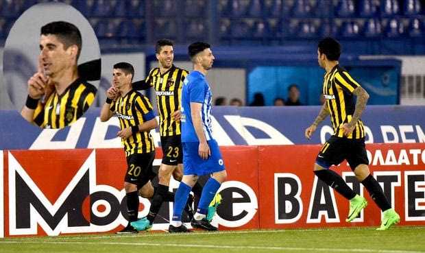 Πέντε λεπτά μετά το λάθος του βοηθού, ο οποίος υπέδειξε τον Πέτρο Μάνταλο σε θέση οφσάιντ, ο Έλληνας στράικερ έστειλε τη μπάλα στα δίχτυα και με αυτό το γκολ χάρισε το πολύτιμο διπλό της ΑΕΚ στο Περιστέρι.
