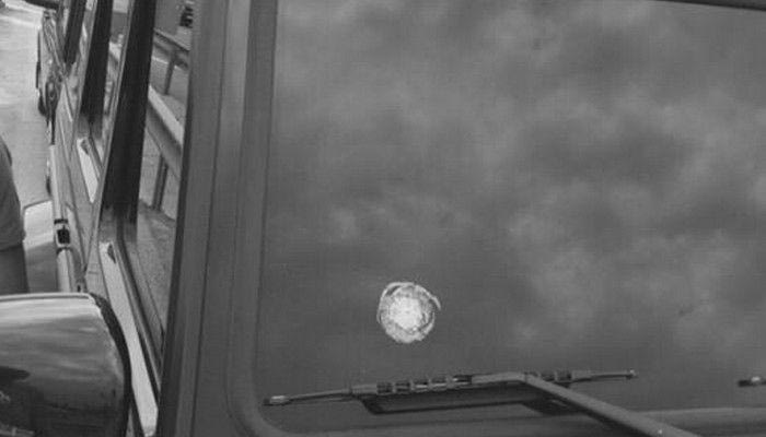 Ευτυχώς ο δράστης δεν υπολόγισε στα αλεξίσφαιρα τζάμια του αυτοκινήτου του Τοπάλ και δεν κατάφερε να προκαλέσει τίποτα περισσότερο από φθορές.