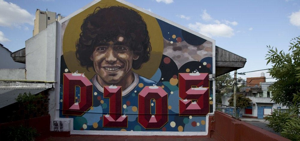 A mural decorates the terrace of soccer legend Diego Armando Maradona's home-turned-museum in Buenos Aires, Argentina, Thursday, Oct. 27, 2016. The home where Maradona lived as a teenager while playing for Argentinos Juniors recently opened to the public, becoming a new shrine for the soccer legend. The mural was painted by artist El Marian. (AP Photo/Natacha Pisarenko) AP