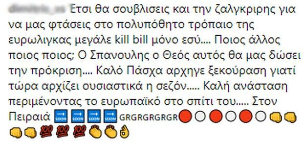Με... κιτρινόμαυρα έψηνε οβελία και κοκορέτσι ο Βασίλης Σπανούλης. Στην πρώτη μια ώρα η φωτογραφική ανάρτησή του είχε ήδη συγκεντρώσει χιλιάδες καρδιές και σχόλια με ευχές για καλά... ψησίματα αντιπάλων!