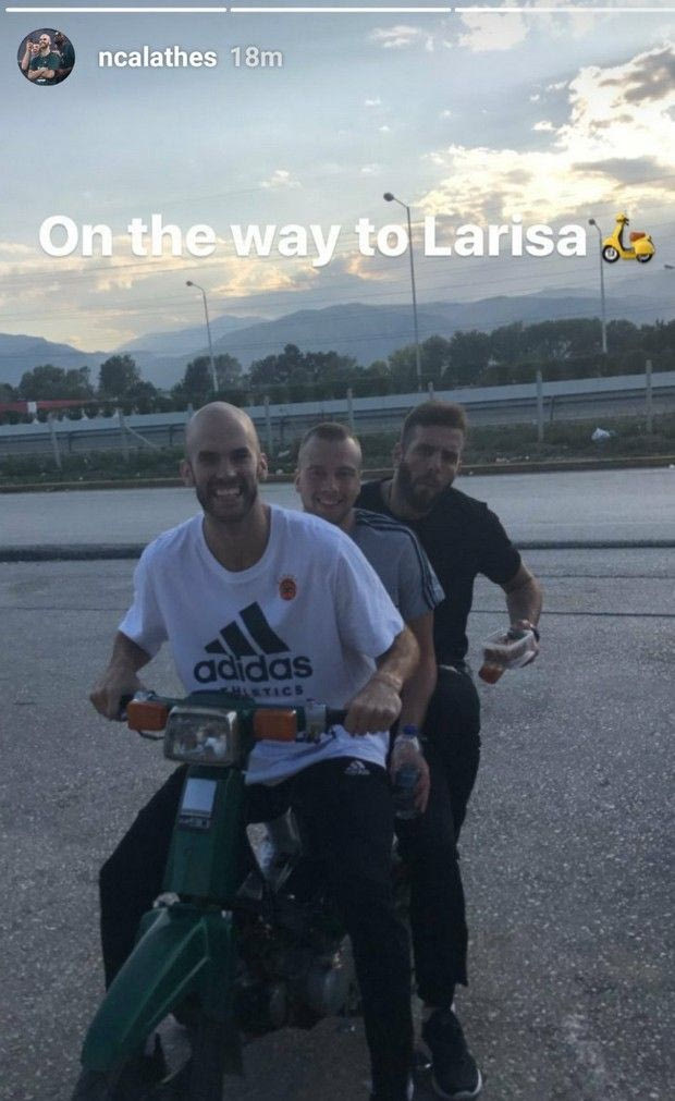 Το ταξίδι για τη Λάρισα δεν ήταν και... πολύ ευχάριστο για τον Νικ Καλάθη, τον Λούκας Λεκαβίτσιους και τον Νίκο Παππά, οι οποίοι στριμώχτηκαν στο... 50άρι του αρχηγού για να ταξιδέψουν...