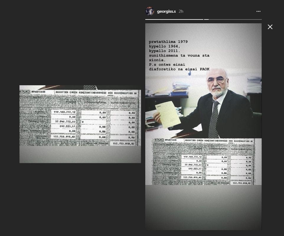 Συγκεκριμένα ανέβασε τη φωτογραφία του Ιβάν όταν πλήρωσε τα χρέη του ΠΑΟΚ και “καθάρισε” την ΠΑΕ από τις αμαρτίες του παρελθόντος και από κάτω κόλλησε τα… χρέη της ΑΕΚ από το άρθρο 44! Τον αριθμό δηλαδή 152.753.018.02€!
