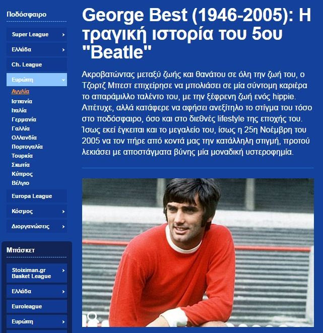 Θυμηθείτε το εξαιρετικό αφιέρωμα του Κώστα Μπράτσου για τον Τζορτζ Μπεστ. Το ποδόσφαιρο, η απογείωση, το lifestyle, οι γυναίκες και η απομυθοποίηση του θρύλου.