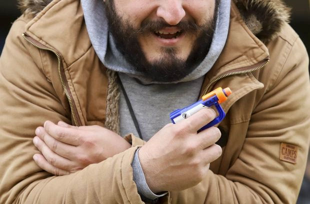 Σήμερα ένας φίλος του Άρη στο ματς με τον Εργοτέλη (3-0) είπε να… τρολάρει τους ανθρώπους του ΠΑΟΚ, παίρνοντας μαζί του στο Κλεάνθης Βικελίδης ένα πλαστικό όπλο (Nerf) και ποζάροντας ως άλλος… Τζέιμς Μποντ.