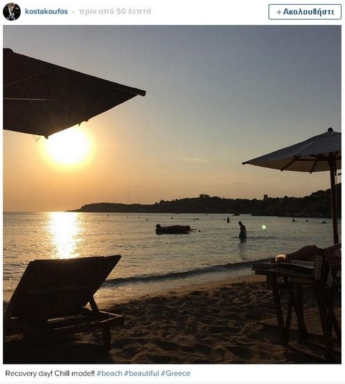 “Ημέρα αποθεραπείας. Χαλαρή διάθεση. Παραλία, όμορφη Ελλάδα”, έγραψε ο διεθνής σέντερ στο instagram, αναρτώντας και σχετική φωτογραφία.