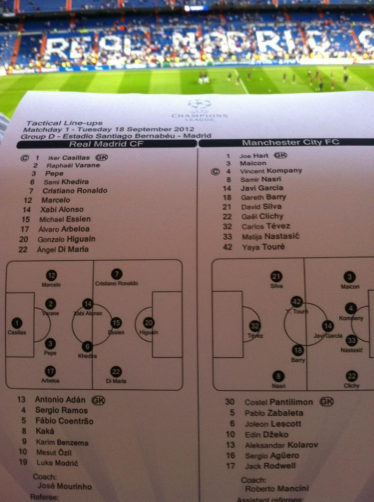 Μετά από πολλές αλλαγές και ένα σχετικό μπλέξιμο, οι άνθρωποι της UEFA πέτυχαν τη σύνθεση της Ρεάλ, αλλά πρόβλημα παρουσιάστηκε και με αυτήν της Μάντσεστερ Σίτι. Τζολέον Λέσκοτ και Μάριο Μπαλοτέλι (εκτός αποστολής) στην ενδεκάδα, ενώ στην πραγματικότητα έπαιζαν οι Ματίγια Νάστασιτς και Χάβι Γκαρθία.