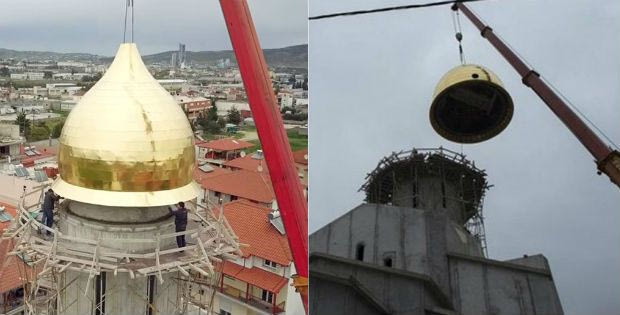 Πριν τη λειτουργία της Τετάρτης (21/3), ένας τεράστιος τρούλος ρώσικης τεχνοτροπίας, επίχρυσος, βάρους 2 τόνων τοποθετήθηκε στην κορυφή της εκκλησίας, ενώ αμέσως μετά πάνω από τον τρούλο μπήκε κι ένας επίσης τεράστιος, επίχρυσος σταυρός.