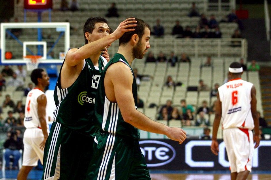 Διαμαντίδης και Σπανούλης με τη φανέλα του Παναθηναϊκού σε ματς Ευρωλίγκας απέναντι στη γαλλική Νανσί, τον Δεκέμβριο του 2008 Eurokinissi