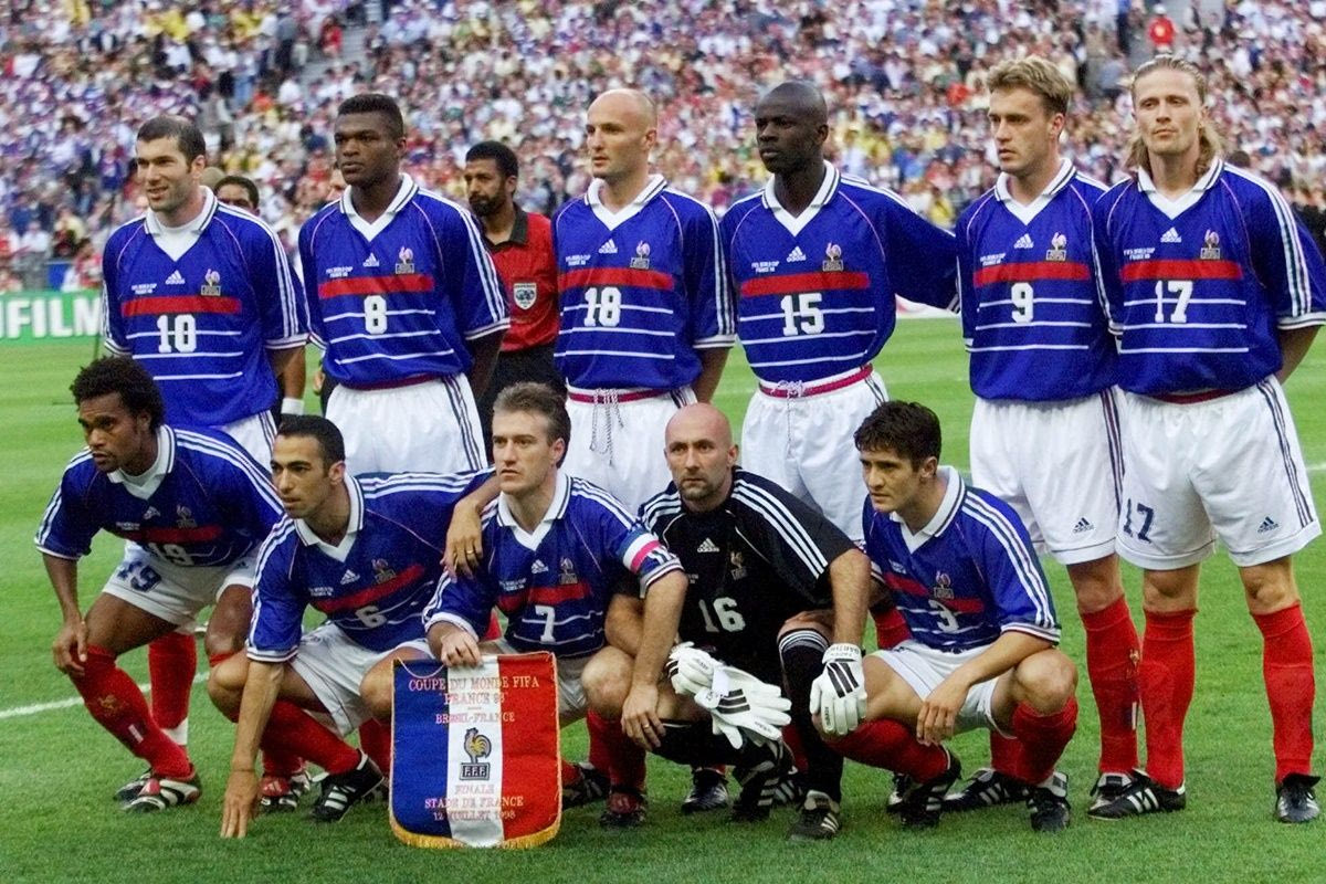 Ο Κριστιάν Καρεμπέ (κάτω σειρά, πρώτος από αριστερά) στην ενδεκάδα της εθνικής Γαλλίας πριν από τον τελικό με τη Βραζιλία για το Παγκόσμιο Κύπελλο 1998 στο 'Σταντ ντε Φρανς', Παρίσι | Κυριακή 12 Ιουλίου 1998 AP Photo/Michel Euler